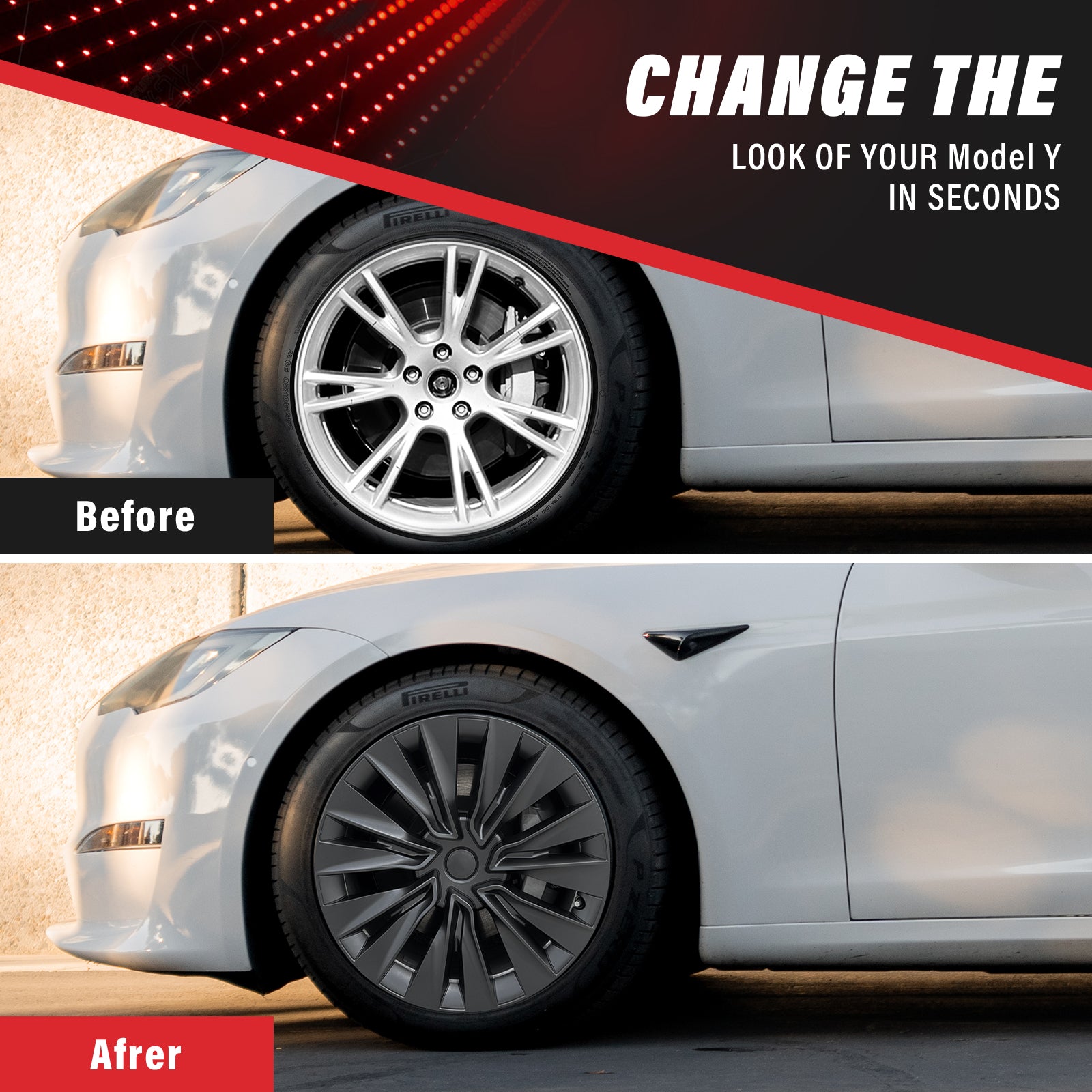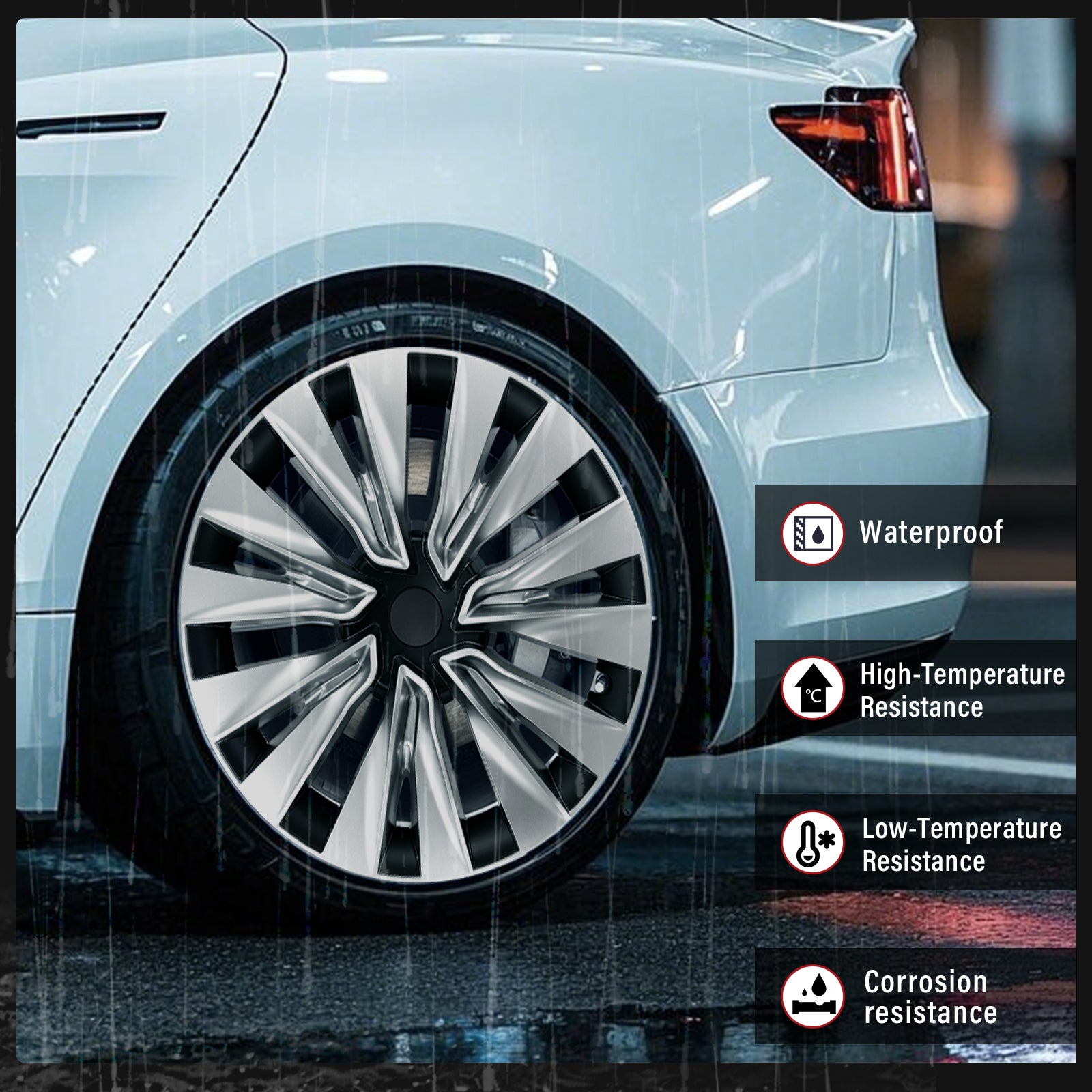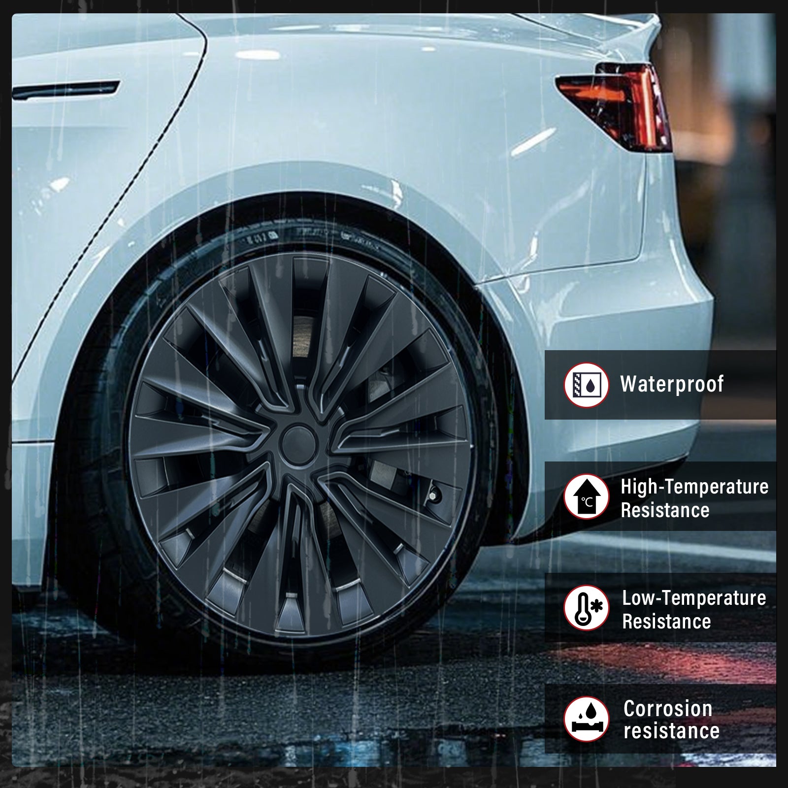 Upgrade your Tesla Model Y with our premium 19" Turbine Style Wheel Cover, engineered for the perfect fusion of aggressive styling and aerodynamic efficiency. The bold, blade-inspired design enhances the dynamic silhouette of the Tesla Model Y, delivering a high-performance street-ready look. Manufactured from high-strength ABS plastic with a premium matte finish, these covers are built to withstand daily driving while maintaining a sleek, modern appearance.