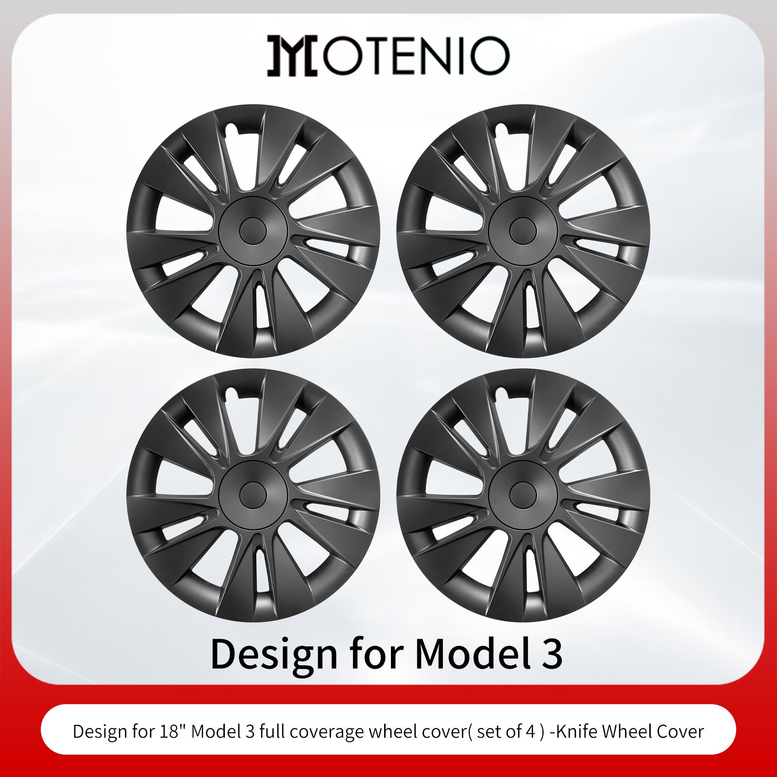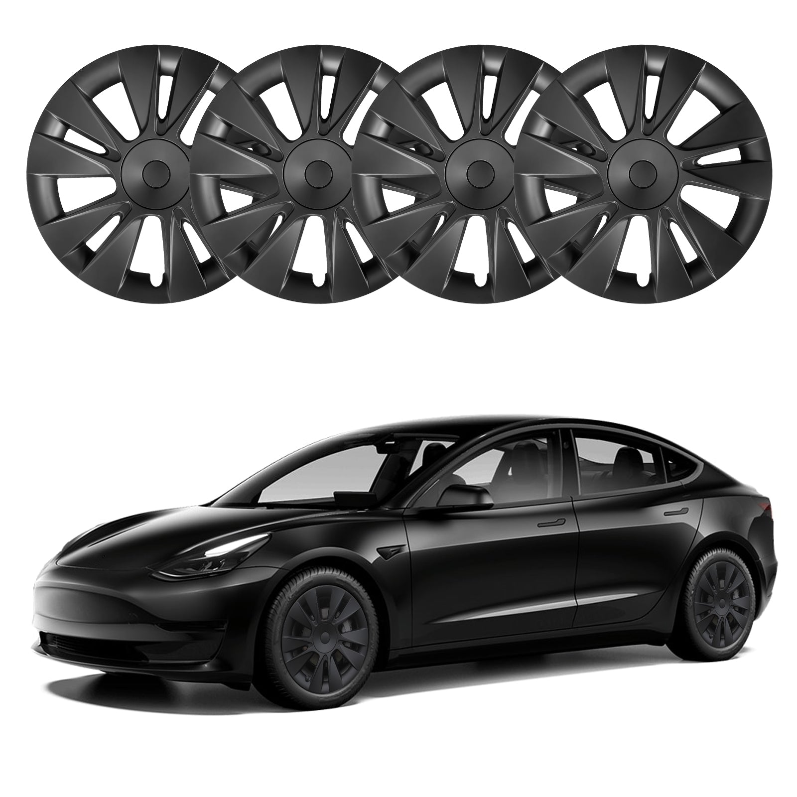 18"Model 3 Hubcap Design for Tesla Wheel Cover Model 3 2017-2023 4PCS Matte Black Knife Style Hub Caps