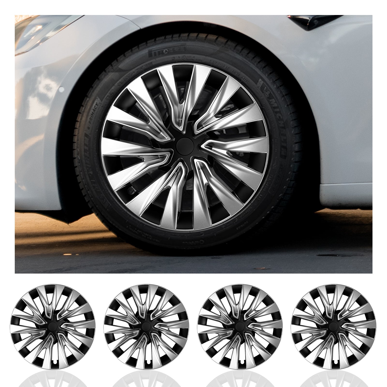 18''Highland Wheel Hub Caps Design for Tesla Model 3 Highland 2023-2025 Wheel Cover Silver Turbine Hubcaps(set of 4)