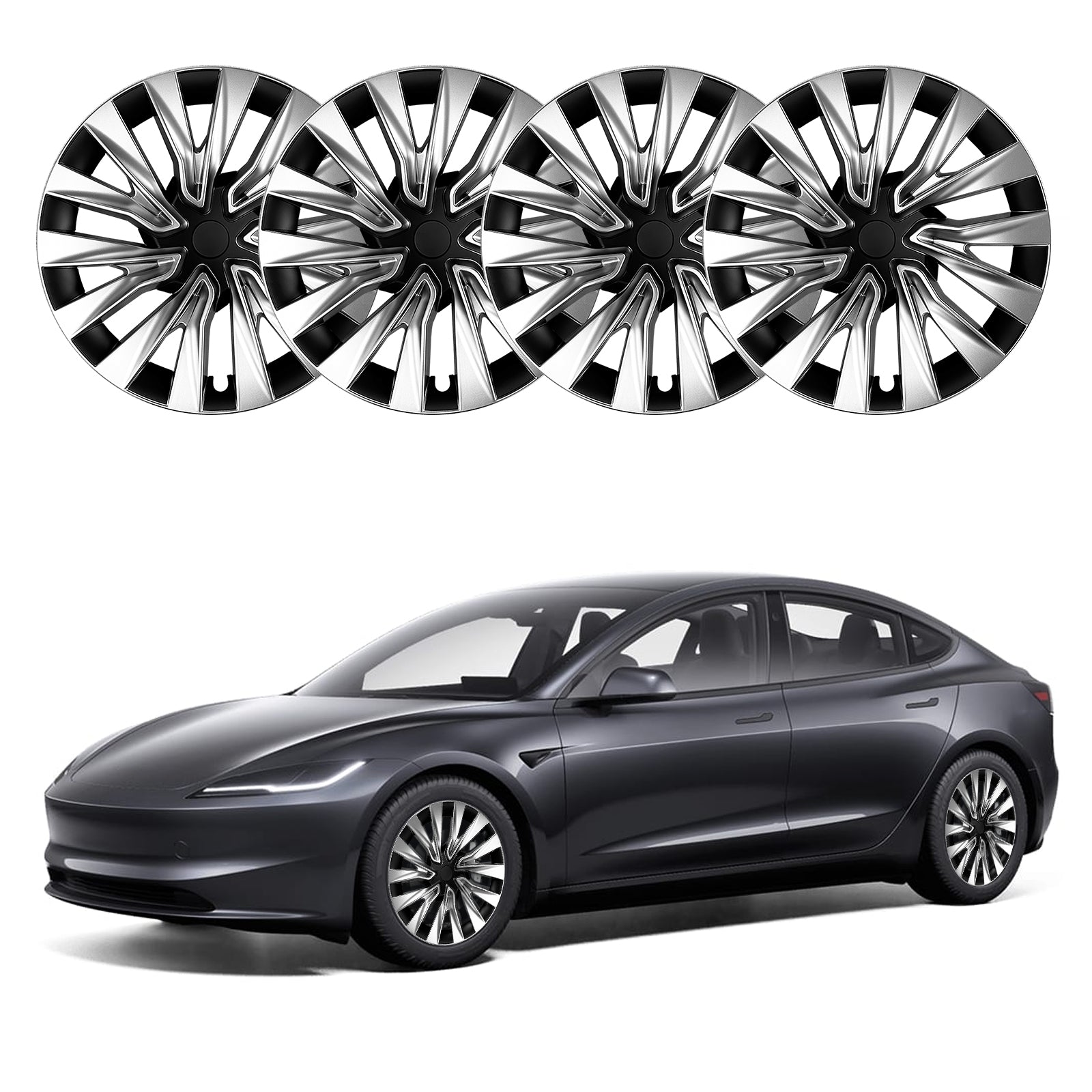 Design for Tesla Model 3 Highland(2023-2025) Hubcap 18"Turbine Silver Wheel Cover